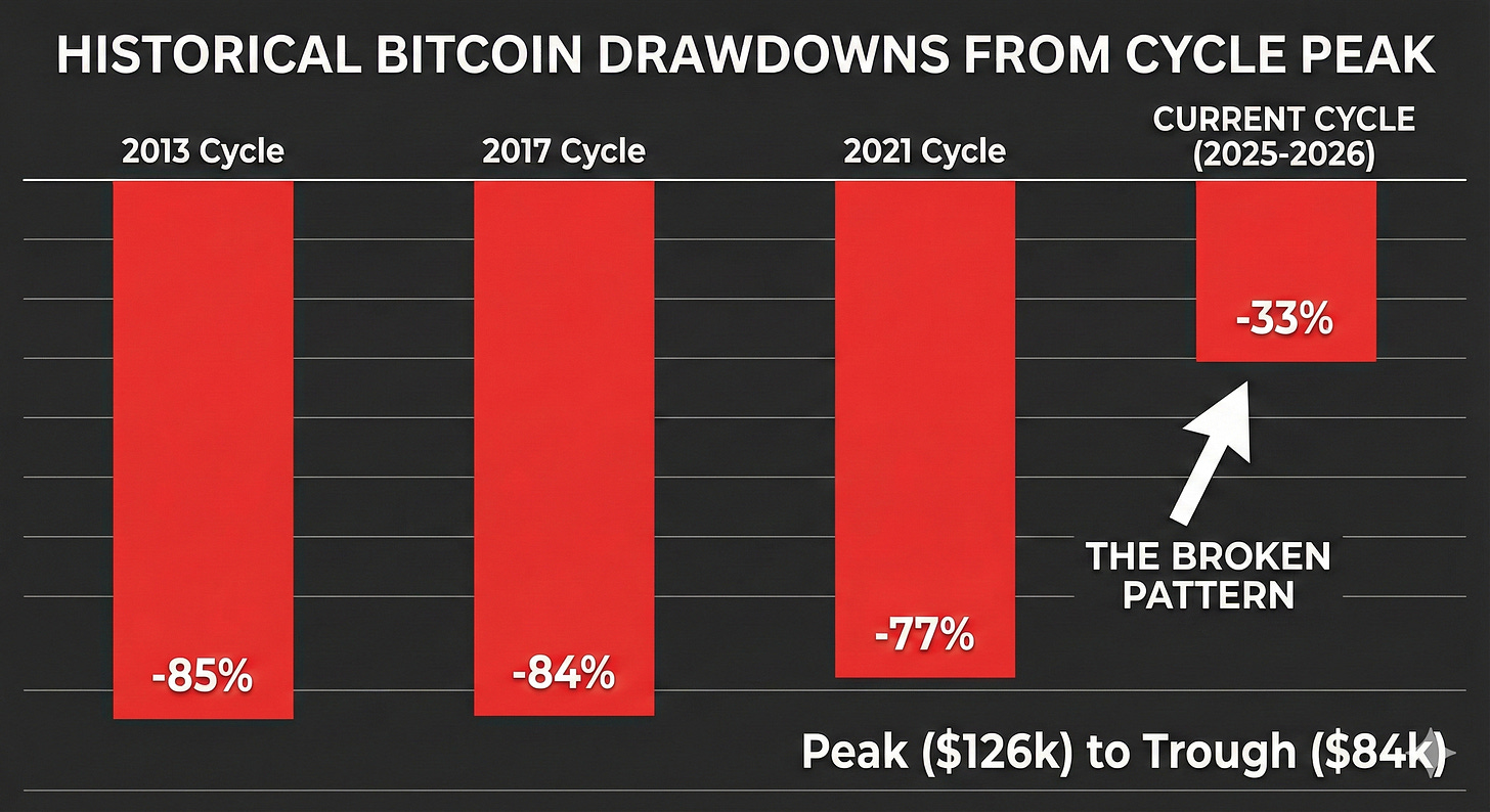 We should currently be deep in the “Crypto Winter,” shivering through a 70% drawdown, reading headlines about how “Bitcoin is Dead” for the 500th time. And for a brief moment in November 2025, it looked like the script was playing out right on schedule.